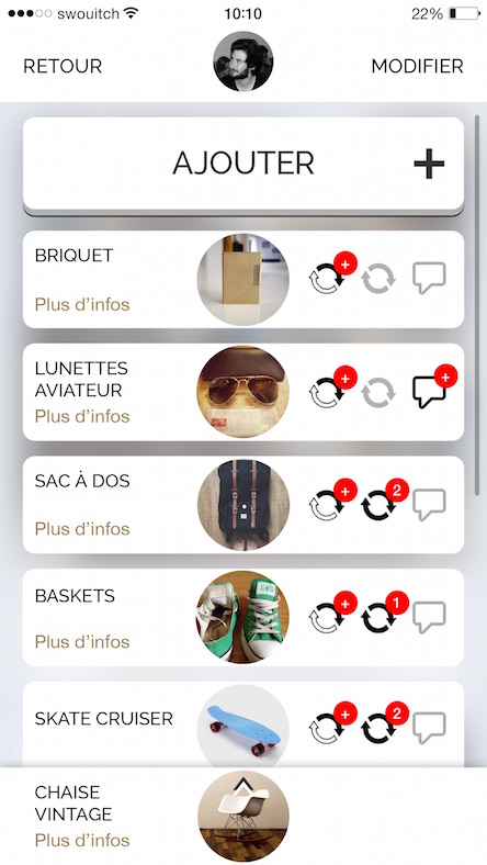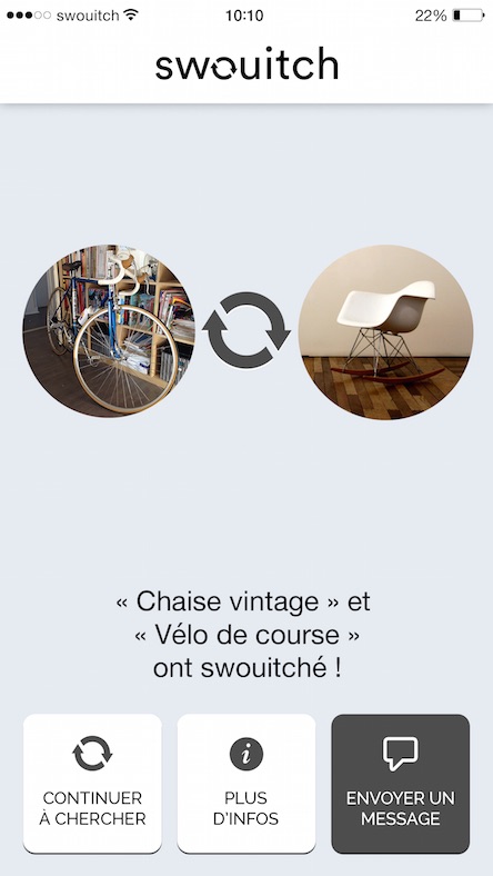 • une expérience sur mesure : Swouitch est intelligent... plus tu l'utilises et plus les suggestions d'objets seront adaptées à tes goûts